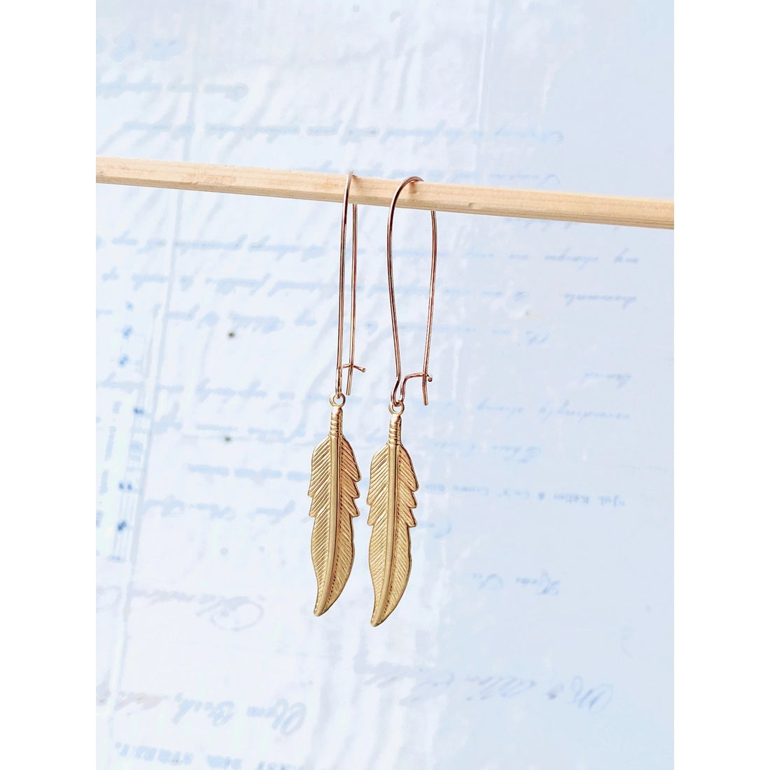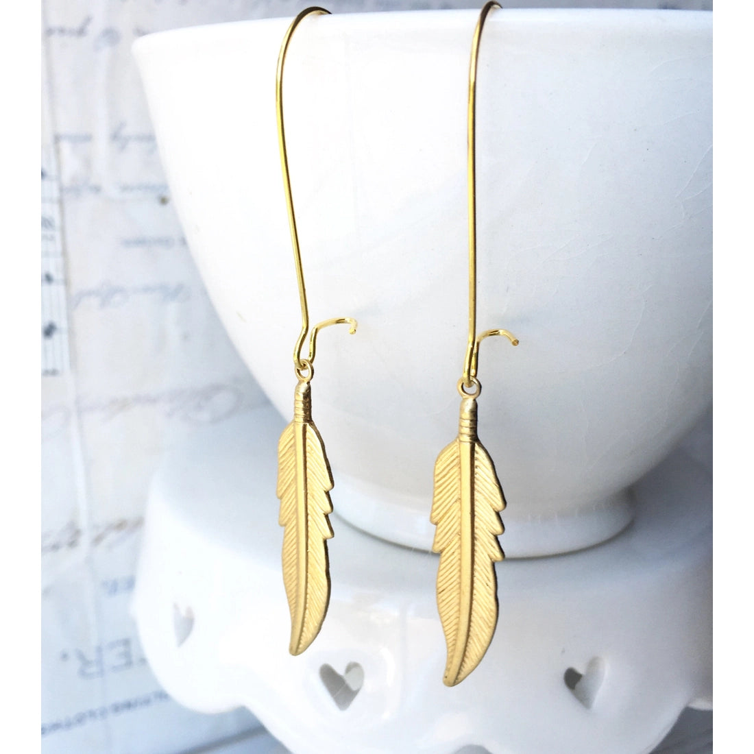 Long Gold Feather Earrings