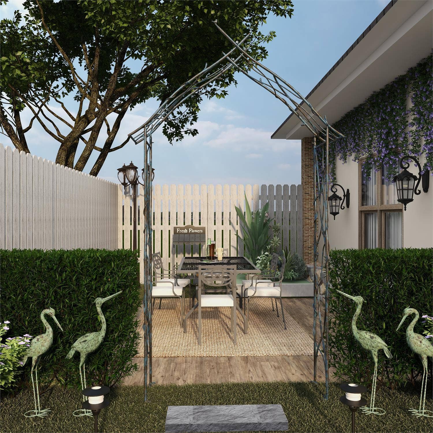 Metal Bird & Twig Garden Arch, arbor - 42" x 103" - GET 4 PINS IN RED BAG FROM LOWER RIGHT DRAWER OF DESK!!!