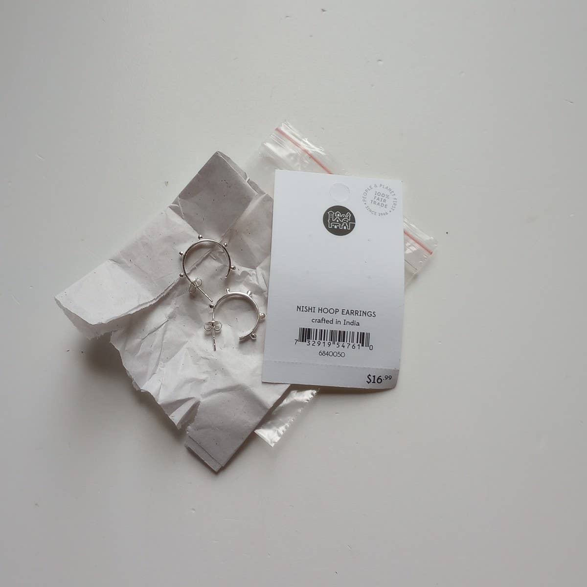 When in doubt, reach for classic hoop earrings. The Nishi Hoop Earrings go with absolutely everything and are sure to be your new go-to pair. The traditional hoop shape is elevated with small studs along the outer rim. Handcrafted by artisans with the Craft Resource Center (CRC) in India, which helps small craft workshops develop into self-sustaining businesses.