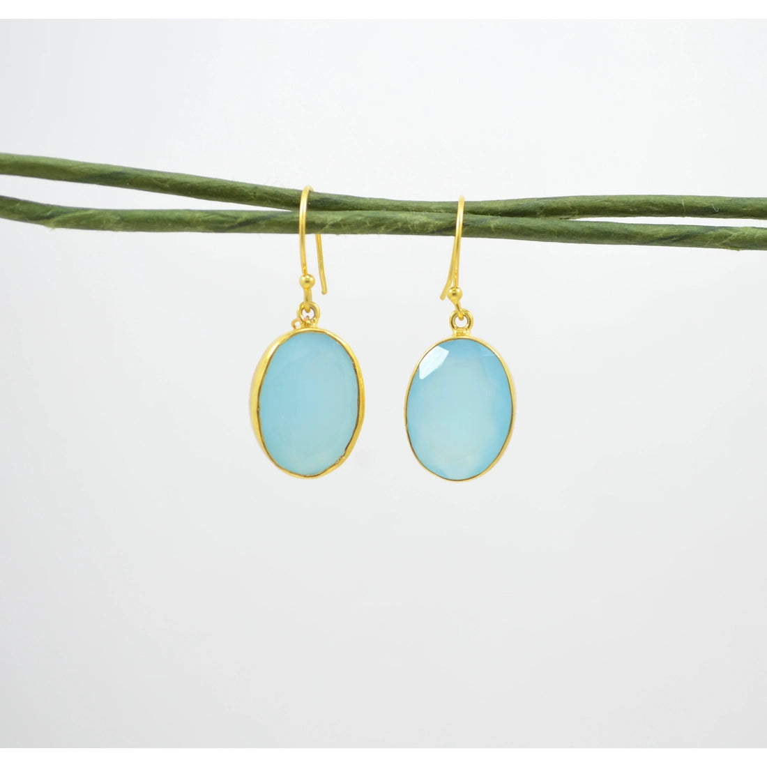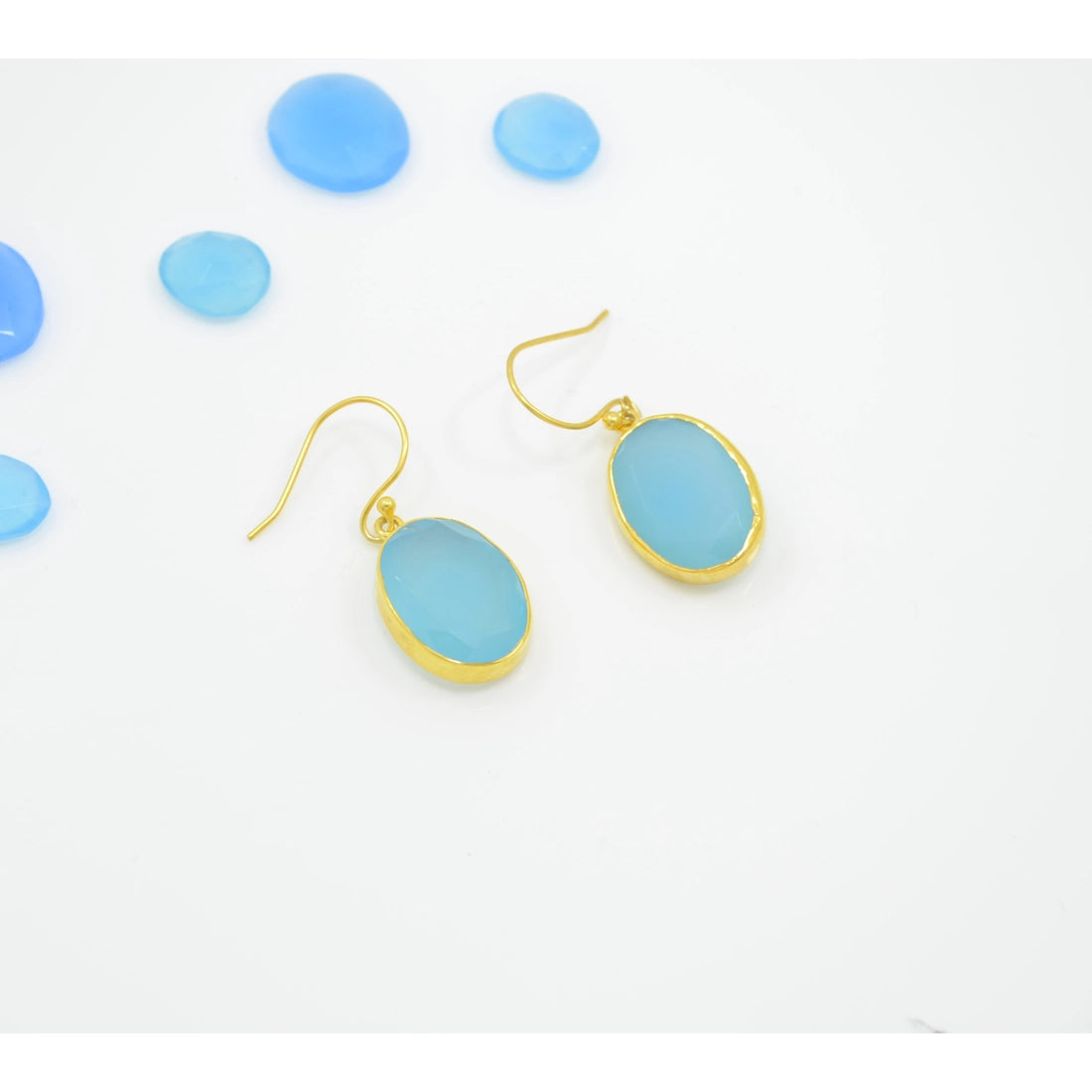 Oval Blue Chalcedony Gold Earrings Silver 925
